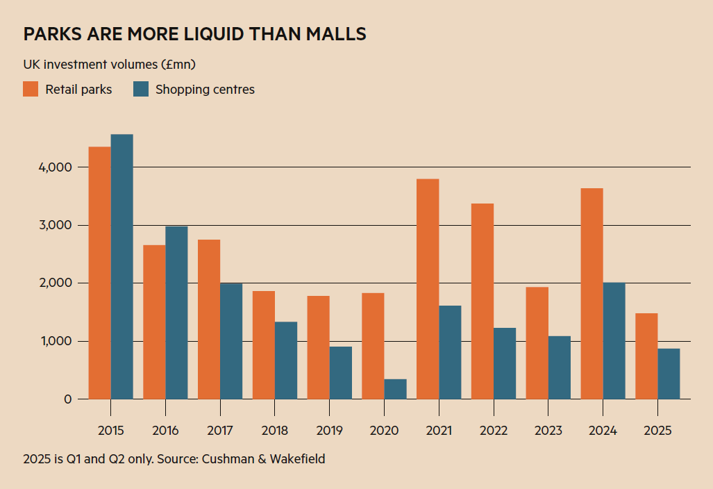 There are a number of differences between retail parks and shopping centres, the two main retail asset classes to which equity investors can gain exposure.